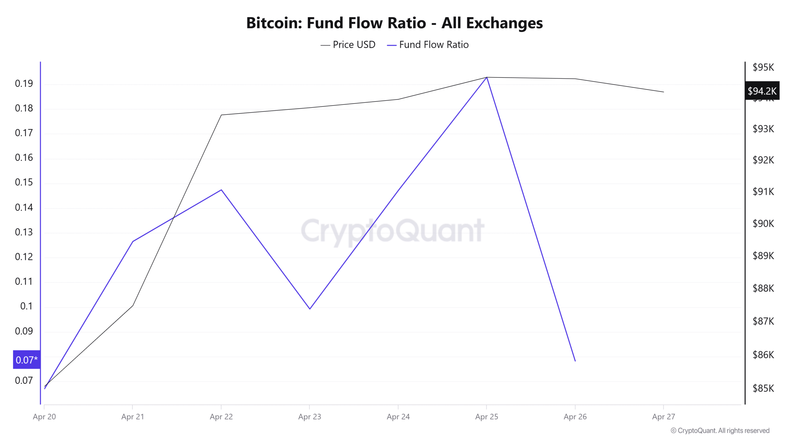 Additionally, other market players are also bullish, as Bitcoin’s Fund Flow Ratio has declined to hit a low of $0.078.