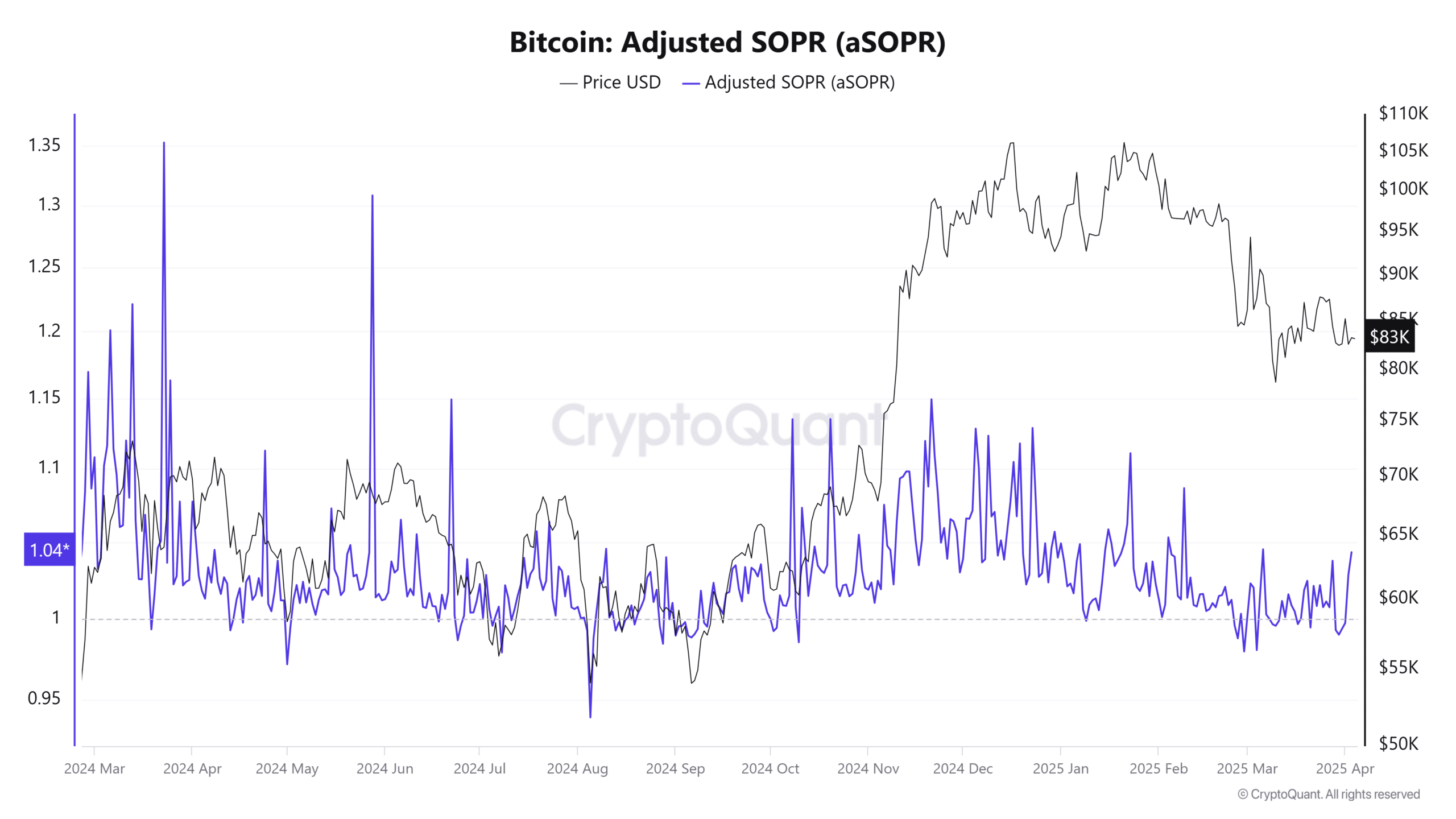 The Adjusted Spent Output Profit Ratio (aSOPR), which tracks whether investors are selling at a profit or loss, shows that investors are selling at a profit.