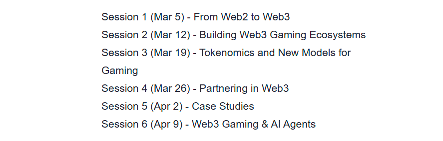 Moderated by Starknet Foundation, the program starts 5th March and ends 9th April 2025. Aiming to accommodate participants from all time zones, each webinar will start at 5pm CET (8am EST), and will be hosted on zoom.